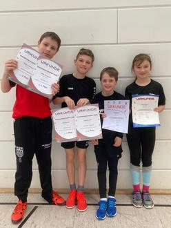 Mit 12 Mannschaften äußerst gut besucht waren auch die KiLa-Wettbewerbe der U8 und U10. Nach Auswertung der Disziplinen Sprints, Medizinball-Stoßen und Einbein-Hüpfer-Staffel bzw. Hoch-Weitsprung durften sich die TSV-Teams über die Siege in beiden Altersklassen freuen. Team TSV Höchst 1 war vor allem im Einbein-Hüpfen und im Stoßen der U8 überragend. Zur Siegermannschaft gehörten Ilyas Dogan, Lena Zimmermann, Lenny Cima, Luka Keller, Theo Knorr, Viktoria Fuchs, Lia Floros, Lea da Costa und Raphael Schmidt. Mit besonderen Leistungen stachen Lia Floros im 30m-Lauf und Lenny Cima mit den weitesten Stößen heraus. Auch die jüngere Mannschaft TSV Höchst 2 schlug sich achtbar und wurde Fünfter. Mit dabei waren Yusuf Dogan, Jolene Horlebein, Emilia Heinkel, Marc Fuchs, Benno Zahn, Paul und Lina Zessin sowie Jan Stubenrauch.