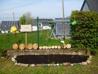 Zudem wurden alte Baumscheiben aufgebohrt, um für Insekten diverse Unterschlupfmöglichkeiten zu schaffen.