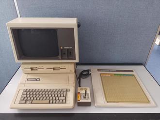 Ein Apple IIe aus dem Jahr 1983 mit Joystick, Monitor und Grafik Tablett ist der neuste Zugang im Technikmuseum.