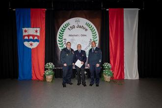 Prof. Dr. Hilligardt nahm diesen Abend als Anlass um der Freiwilligen Feuerwehr Höchst i. Odw. zum 150 jährigen Bestehen die Hessische-Ehrenamtsplakette in Silber zu verleihen.