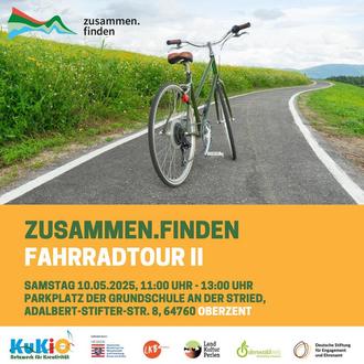Im Rahmen des Projekts "zusammen.finden" finden in den Jahren 2025 und 2026 vier geführte Radtouren durch die Oberzent statt. Die Fahrradtouren sind nicht nur sportliche Events, sondern auch eine Gelegenheit, Teil einer Gemeinschaft zu werden. Anliegen ist es, Stadt und Landschaft gemeinsam aktiv zu erleben. Alle Touren richten sich an Jung und Alt mit guter Grundkondition und sind mit dem E-Bike oder auch mit dem klassischen Fahrrad gut machbar.