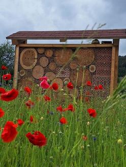 Am Blühstreifen entlang B426 wurde ein Insektenhotel aufgestellt.