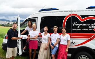 Engagement im Zeichen der Menschlichkeit haben kürzlich die Organisatorinnen des Michelstädter Mädels-Flohmarktes „Kaufrausch“ bewiesen, indem sie die bei ihrer zehnten Veranstaltung eingenommen Gelder dem DRK-Kreisverband Odenwaldkreis für dessen Projekt „Herzenswunsch-Mobil“ gespendet haben. Dabei sind 4000 Euro für die gute Sache zusammengekommen. Das „Herzenswunsch-Mobil“ wird von den DRK-Kreisverbänden Odenwaldkreis, Darmstadt-Dieburg und Bergstraße unterhalten, um schwer kranken Menschen, denen das Lebensende bevorsteht, eine Reise zu ihren Wunschzielen zu erfüllen und finanziert sich ausschließlich aus Spenden und Zuwendungen. Das Fahrzeug ist modern aus gestattet und wird von ehrenamtlichem Personal besetzt. Mit dem Projekt erfüllt das Rote Kreuz Sehnsüchte und bringt seine Gäste ans jeweilige Ziel ihrer Träume. „Über die Telefonnummer 06062 / 607-310 oder die E-Mail: herzenswuensche@drk-odenwaldkreis.de nimmt man Kontakt auf. Danach werden die wenigen weiteren Schritte besprochen“, informiert Projektleiterin Jennifer Zellmann vom Roten Kreuz. „Wir halten diese Idee für eine absolut sinnvolle und notwendige Sache. Deshalb haben wir uns für das Rote Kreuz als Adressaten entschieden“, sagt Maike Levita. Nachdem die Kaufrausch-Mädels das Herzenswunsch-Mobil besichtigt und erläutert bekommen hatten, haben sie ihre Spende kürzlich an Mitarbeiter und Notfallsanitäter Daniel Rabes übergeben. Das gespendete Geld wird für die gesamte Unterhaltung des Wagens, anfallende Reparaturen oder für eventuell entstehende Eintrittsgelder bei Veranstaltungen genutzt und ausschließlich im DRK-Kreisverband Odenwaldkreis verwendet.