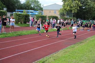 Gut besucht war das Kinderleichtathletik Sportfest der Leichtathletikabteilung am Freitag, 21. Juni auf dem Sportgelände der Ernst-Göbel-Schule. Über 50 Kinder nahmen allein von der Abteilung am Sportfest teil. Noch einmal 30 Kinder stellte überwiegend die TSG Bad König und der TSV Weiten-Gesäß. Sorgen machte das Wetter, da es den ganzen Vormittag geregnet hatte. Zu Wettkampfbeginn gab es eine Regenpause, so dass die Wettbewerbe der U8 und U10 fast vollständig durchgeführt werden konnten. Lediglich die Hindernis-Staffelwettbewerbe musste wegen erneutem Regen ausfallen.