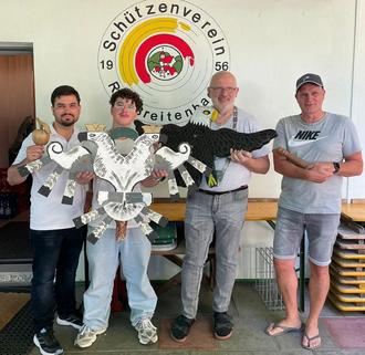 Am vergangenen Sonntag trafen sich die Mitglieder des SV Rai-Breitenbach, um ihre Königsfamilie für das Jahr 2025 zu ermitteln. Bei extrem warmen Temperaturen wurde auf dem KK-Stand die Nachfolge des amtierenden Königs Karlheinz Miksch und des Jugendkönigs Tobias Mehner gesucht. Hier gelang es Tobias Mehner erneut, den Vogel mit dem Luftgewehr zu Fall zu bringen. Nachdem sich bei den Erwachsenen Nino Stölzel den 1. Ritter und Fikrihan Dalyan den 2. Ritter gesichert hatten, begann die Jagd nach dem Königstitel. Nach einigen Runden Schießen auf den vogeltragenden Holzstamm setzte Jürgen Wohlmann den entscheidenden Schuss und brachte diesen zu Fall. (kh)