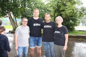 vlnr: Stefan Sauer, Lucas Rutz, Marko Langnickel mit Leichtathletik Abteilungsleiterin Tamara Paul