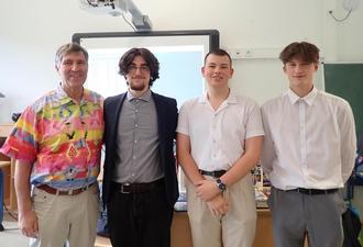 Über ein gelungenes Turnier und tolle Leitungen freuen sich (Von links) Der Leiter der Schach AG Thomas Raupach, Turniersieger Jorge Cavalho Soares, der zweitplatzierte Jan Schnauber sowie der Dritte Finn Verst.