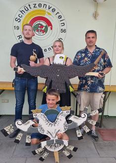 Eingeleitet durch einen Böller aus der Kanone von Helmut Horlebein eröffnete, nach alter Tradition, die Vereinsjugend nach zweijähriger Coronapause das Königsschießen. Mit dem Luftgewehr schießen die unter achtzehnjährigen auf den Jungendvogel um ihren Prinz/Prinzessin zu ermitteln. Nach einigen Runden setzte der zwölfjährige aktive Bogenschütze Raphael Lenhart den entscheidenden Schuss und brachte den Vogel zu fall. Im Anschluss begannen die erwachsenen Vereinsmitglieder mit dem KK-Gewehr, zuerst den ersten Ritter und dann den ersten Ritter zu finden. Tom Hofmann gelang es den Apfel, Symbol des zweiten Ritters, abzuschießen. Beim ersten Ritter erwies sich die Sache als langwieriger. Über zweihundert Schuss waren nötig, bis der neue Vereinssportleiter Jürgen Krall, den richtigen Punkt traf und das Zepter, Symbol des ersten Ritters, abschoss. Nun stand es an, den neunen Vereinsschützenkönig zu finden. Nach nur zwei Tagen Vereinszugehörigkeit und dem erstmaligen Versuch sich am KK-Sportgerät zu beweisen, hatte Sarah Coates den Volltreffer erzielt der den Vogel zum Absturz brachte. Sie folgt damit den Königswürden der Familie, denn ihre Mutter Anette hatte diesen Titel bereits 1986 inne. Mit den anschließenden drei Böllerschüssen war die neue Königsfamilie gekürt.