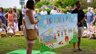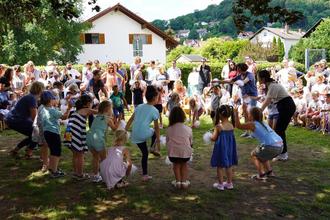 Die Leitung Manuela Lima Caldas und ihr Team hatten sich einen heißen Sommertag dafür ausgesucht. Doch im Garten der Kita spendeten große Bäume und aufgestellte Sonnenschirme zum Glück etwas Schatten.