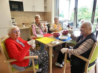 „Es macht Freude, hier gemeinsam zu verweilen, zu kochen, zu essen und zu lachen. Man fühlt sich wohl“, so das einstimmige Fazit der „Köchinnen und Köche“, die zuletzt tatkräftig bei der Herstellung von Erdbeerkuchen und Smoothies mithalfen.