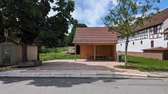 Der für Annelsbach neu geschaffene Ortsmittelpunkt am Ortseingang ist ein schmuckes Plätzchen geworden.