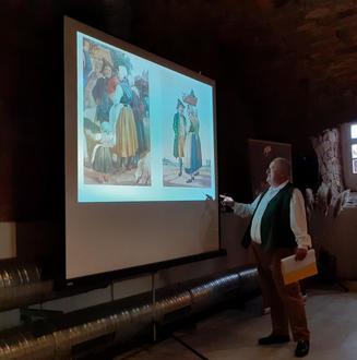 Mehr als 40 Zuhörer waren der Einladung des Heimat- und Geschichtsvereins Lützelbach gefolgt und hörten den interessanten Vortrag von Gerd J. Grein zur Odenwälder Tracht. Grein, geboren in der „Altstadt von Langen“, beschäftigt er sich seit über 50 Jahre mit diesem Thema. Ein ausgedientes Aquarium sei seine erste Ausstellungs-Vitrine gewesen mit einem besonderen Ausstellungsstück, der Kaffeetasse der Oma Knöchel aus Urberacher Keramik.