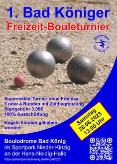 In einer Woche ist es soweit: Nachdem der Pétanque-Sport Bad König e.V. in den 5 Jahren seines Bestehens bereits viele Turniere aus dem hessischen und auch dem nationalen Pétanque-Leistungssport ausrichten konnte, steht jetzt erstmalig ein Turnier nur für Freizeitspielende an. Im Odenwaldkreis gibt es bereits so viele Boulespielende, dass es einfach Zeit ist, für diese große Gruppe etwas anzubieten.