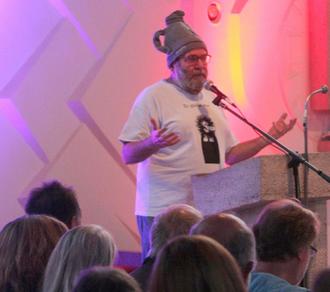 …und zwar ganz zum Schluss, bei der Zugabe des „Ersten allgemeinen Pfarrer(!)Kabaretts“, am Samstag, den 23.09.2025 und rief eine großartige Lachsalve des Publikums hervor. Pfr. H.J. Greifenstein strapazierte immer wieder die Lachmuskeln aller Besucher in der mehr als voll besetzten Hl. Geist Kirche in Vielbrunn mit seinem aktuellen Programm Ketten-Segen im Greis-Saal. Stellung und Zusammenleben von Frau und Mann war durchgängiges subtiles Thema des Abends und wurde vom Kabarett-Pfarrer meisterhaft karikiert.
