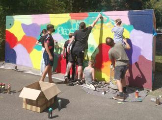 Besonders wichtig war dabei die aktive Beteiligung der Jugendlichen: Von der Motivwahl bis zur Farbgestaltung hatten sie Mitspracherecht und trugen Verantwortung für das Ergebnis. Damit ging es nicht nur um Kunst, sondern auch um Werte wie Partizipation und Selbstbestimmung. Entstanden ist das Projekt aus einem Gespräch mit Jugendlichen, in dem sie den Wunsch äußerten, sich einmal selbst im Graffiti auszuprobieren und den öffentlichen Raum kreativ mitzugestalten.