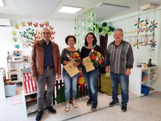 Die Erzieherinnen Susanne Verst und Brigitte Schwarz feierten kürzlich ihr 25-jähriges Jubiläum im öffentlichen Dienst. Beide sind im Kindergarten Seckmauern tätig. Susanne Verst arbeitete nach ihrer Ausbildung zunächst drei Jahre für die Gemeinde Groß-Bieberau, ehe sie Anfang des Jahres 2001 in den Kindergarten Seckmauern wechselte. Dort übernahm sie mit ihrem Einstieg auch gleich die Leitung, die sie im letzten Jahr auf eigenen Wunsch aufgab, um als Fachkraft weiterzuarbeiten. Brigitte Schwarz kam erst im August 2021 neu in den Kindergarten nach Seckmauern. Zuvor hatte sie bereits von 1997 an 24 Jahre in einem Kindergarten der Gemeinde Mömlingen und davor kurzzeitig auch im katholischen Kindergarten in Seckmauern gearbeitet.