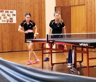 Annika Wölfelschneider (beim Aufschlag) und Alina Freund reichen im Doppel drei Sätze zum Sieg