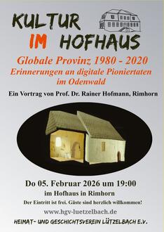 Der Heimat- und Geschichtsverein Lützelbach setzt seine Vortragsreihe fort am Donnerstag, den 05.02.2026 um 19:00 Uhr im Hofhaus-Keller in Rimhorn, Rathausstraße 29, mit einem Vortrag von Prof. Dr. Rainer Hofmann, Rimhorn