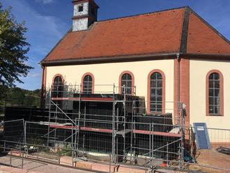 Lützel-Wiebelsbach. Allmählich wird erkennbar, wie die evangelische Kirche in Lützel-Wiebelsbach mit dem neu entstehenden Anbau auf der Südseite künftig aussehen wird. Das zusätzliche Gebäude, in dem Sakristei, Küche, Garderobe, behindertengerechte Toiletten sowie Lager- und Technikraum Platz finden, steht, schwarze Folie dominiert derzeit die Fassade. Die Lärchenholzverkleidung sowie der gläserne Verbindungsgang von der Kirche zum neuen Teil folgen – „wenn es die Witterung zulässt, schon bald“, erklärt Heinz Hofmann vom Bauausschuss der Kirchengemeinde. Der Architekt im Ruhestand betreut als Ehrenamtlicher die Arbeiten vonseiten der Gemeinde seit der Planungsphase.
