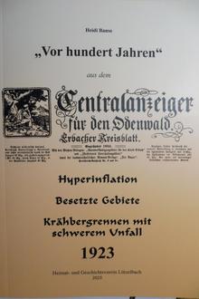 Seit mehr als 20 Jahren werden hier besondere Ereignisse, kuriose und auch ernste, aus der Zeitung von vor 100 Jahren zusammengetragen. In seinem Vorwort betont der Vorsitzende des HGV Lützelbach, Thomas Hess, dass 1923, ein Jahr aus den Zwanzigern, mit besonderen Ereignissen heraussticht. So besetzen Adolf Hitler und andere Nationalsozialisten am 8. November 1923 den Bürgerbräukeller in München und proklamieren den „Marsch auf Berlin“. Die NSDAP wird verboten. Vorerst. Die Inflation galoppiert. Doch welche Ereignisse waren im Odenwald aktuell, was berichtet uns der Centralanzeiger: