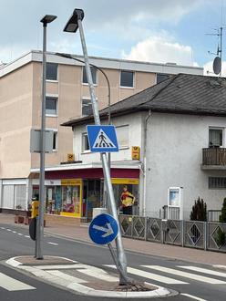Im Zeitraum vom 29. September bis 1. Oktober 2025 wurde die Beschilderung und die Straßenlaterne am Fahrbahnteiler in der Aschaffenburger Straße, höhe Eiscafé, von Unbekannten beschädigt. Eine Strafanzeige wegen Sachbeschädigung wurde bereits gestellt. Die Polizei hat die Ermittlungen in diesem Fall aufgenommen.