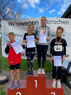Keine Schwäche zeigte Noelle Bischof, die auch beim letzten Rennen im Schülerlauf der U12 als schnellstes Mädchen ins Ziel lief. Sie bewältigte die 1200 Meter lange Strecke in starken 4:54,4 Minuten und hatte nur wenige Sekunden Rückstand auf den Gesamtsieger bei den Jungen. Bruder Colin startete im Schülerlauf der U14/U16 über die Distanz von 2100 Metern. Er kam als Dritter nach 6:18,6 Minuten ins Ziel, was für ihn den zweiten Platz in der U14 bedeutete. Polina Hordiienko brauchte eine knappe Minute länger und erreichte den dritten Platz bei den Schülerinnen U14. Der Sieg in der U16 ging an Marie Fröhlich mit der Zeit von 8:15,3 Minuten.