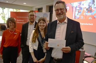 „Mit dem Geld werden wir unser DRK-Erlebniscafé unterstützen, wo wir an ausgewählten Dienstagen immer die Generation plus bei Kaffee und Kuchen auf ehrenamtlicher Basis zu den unterschiedlichsten Themen beraten. Zugleich ist dieser Treffpunkt ein Pfeiler gegen die immer größer werdende Vereinsamung vorwiegend älterer Menschen. Auch dies hat uns zur Gründung des Cafés motiviert“, informierte Sauer die Sparer und führte weiter aus: „Können wir nicht direkt helfen, vermitteln wir an diejenige Stelle, die dies kann. Zum anderen fließt ein Teil des Betrages in die Förderung unseres Nachwuchses, denn der wird dringend benötigt.“