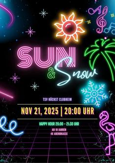 Am Freitag, den 21.11. findet ab 20:00 Uhr im Clubheim der TSV-Fußballer Sun & Snow statt.