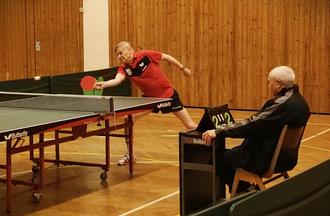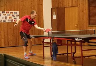 Mannschaftsführer Günter Kittel (im Einsatz) und Reinhold Brandenburg beenden die Vorrunde mit einem Erfolg gegen den TTC Hetzbach II
