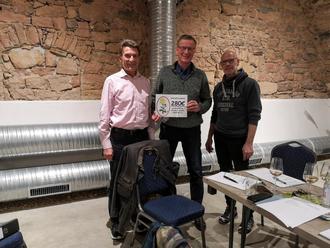 Landwirt Klaus Wolf (Bild mitte) überreicht einen „Scheck“ dem Verein. Bürger konnten im Spätherbst Sonnenblumen von seinen Feldern gegen eine Spende schneiden. Diese Spenden stellt er dem Verein zur Verfügung. (Bild links Dr. Waldemar Gruber, rechts Alexander Beckerbauer, Vorstandsmitglieder)