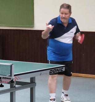 Foto zeigt: Altmeister Hartmut Faulhaber beim Aufschlag gegen den RV-TTC Fürstengrund.