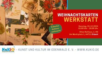 - Den Anfang macht am Sonntag, den 1. Dezember 2024 von 15:00 Uhr bis 18:00 Uhr die kreative Weihnachtskartenwerkstatt: Mit Stempel, Stiften, Stoffen und vielem mehr werden eigene Weihnachtskarten erstellt.