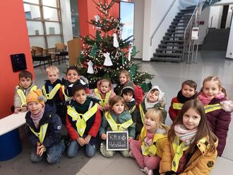 Am 29. November 2023 war es soweit: Die Schulanfängerinnen und Schulanfänger der Kita Hetschbach machten sich auf den Weg zur Volksbank in Höchst i. Odw. am Montmelianer Platz.