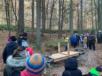 Aufmerksame Zuhörer hatte Klaus Pankow (links oben etwas erhöht stehend) bei der Erläuterung zur Erneuerung einer der insgesamt 14 Brücken in der Obrunnschlucht.