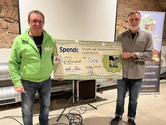 Thomas Heß überreichte dem Verein einen Spendenschein über 500 Euro. Bei der diesjährigen Vortragsreihe „Kultur im Hofhaus“ wurde dieses Geld gespendet. Der HGV verzichtete auf die Erhebung eines Eintrittsgeldes für seine Veranstaltungen.