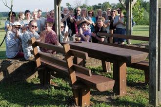 Haselburg – Die römische Ausgrabungsstätte Villa Rustica Haselburg freut sich über eine besondere Spende: Unter der Weinlaube des Geländes steht nun eine neue robuste Sitzgruppe, bestehend aus einem Tisch und zwei Bänken. Finanziert wurde sie durch die Teilnehmerinnen und Teilnehmer der QiGong-Gruppe, die im Sommer einmal pro Woche unter der Anleitung von Übungsleiterin Beate Volk an der Haselburg trainiert.