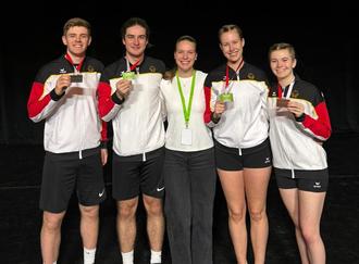 Am ersten Adventswochenende vertraten die Springer Lea Friedrich, Tabea Paul und Moritz Kumpf mit seinem Teampartner Robin Krauß (TV Crumstadt) Deutschland beim European Wheel Contest in Gmunden/Österreich.