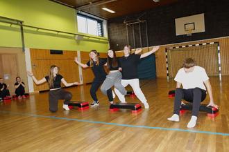 Mit Step Aerobic begeisterten Schüler und Schülerinnen der Klasse G10c
