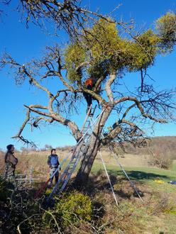 Der Umweltverband BUND Odenwald setzt sich seit vier Jahren aktiv für den Erhalt der Streuobstwiesen in Rimhorn ein. In einem kontinuierlichen Einsatz hat der Verband mitgewirkt, hunderte von Apfelbäumen von den Misteln zu befreien, um die erhaltenswerten Bäume vor dem Verfall zu schützen und ihnen eine Zukunft zu ermöglichen.