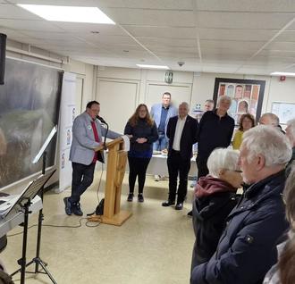 Bürgermeister Jens Fröhlich freute sich über die große Resonanz und begrüßte Wilhelm Fröhlichs Enkel und dessen Cousine Lydia.