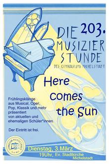 Als Motto dient der populäre Beatles-Song „Here Comes the Sun“, der für ein farbenfrohes Programm steht, das vielfältige Besetzungen und Musikstile vereint. Wie in den letzten Konzerten dieser Art treten dabei neben aktuellen Schüler*innen auch einige Ehemalige auf.