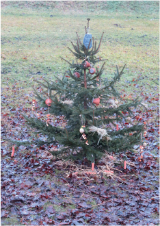 Schwer bepackt mit den vielen Leckereien u.a. noch Karotten und Heuschleifen liefen die Kinder mit ihren mit ihren Erzieherinnen kurz vor Weihnachten zu einem Tannenbaum der extra für uns neben dem Gebäude der Bergwacht aufgestellt wurde. Der Baum wurde voller Aufregung mit viel Liebe geschmückt.