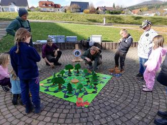 Besonderer Höhepunkt der Woche war der Besuch der drei Mitarbeiter des Hauses der Schwarzen Berge aus Oberbach am 29. Oktober. Sie brachten den Kindern das faszinierende Thema „Wolf“ nahe und schafften es, bei allen das Interesse an diesem scheuen Waldbewohner zu wecken. Mit viel Anschauungsmaterial und anschaulichen Erzählungen machten die drei Experten das Leben der Wölfe für die jungen Zuhörer greifbar. Eine „Lebensuhr des Wolfes“, die die Kinder gemeinsam mitgestalteten, veranschaulichte die Entwicklungsstadien des Tieres und verdeutlichte dessen Rolle im Naturkreislauf. Die Kinder waren begeistert und nutzten die Möglichkeit, durch Fragen und kreative Mitarbeit tiefer in das Thema einzutauchen.
