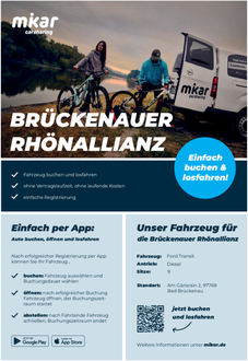 In der ILE-Brückenauer Rhönallianz steht ab sofort ein neues Carsharing-Fahrzeug zur Verfügung – ideal für Gruppen, Familien und Vereine. Der Ford Transit bietet Platz für bis zu neun Personen und ist in Kooperation mit der Firma mikar entstanden, die auf Carsharing-Konzepte für den ländlichen Raum spezialisiert ist.