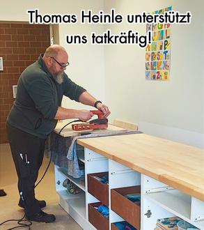 Mit diesem Geld war es uns möglich, die alten Schranktüren und Schubladen zum Teil auszutauschen und neu zu folieren. Herr Heinle stellte auch den Kontakt zu „Hanse Haus“ her, die uns eine neue Holzarbeitsplatte und Holzseitenteile spendeten.