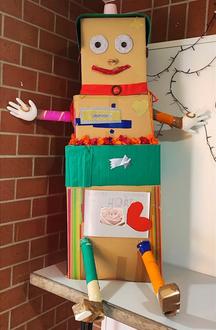 In den Ferien entstand auch unser neues Hortmaskottchen Mathilda. Aus verschiedenem Abfallmaterial gestalteten die Kinder mit viel Freude und guten Ideen gemeinsam einen Roboter, der nun alle Besucher der Arche Noah begrüßt und willkommen heißt.