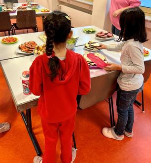 Am Morgen wurde gemeinsam mit den Schülern Gemüsesticks und Obst geschnippelt, Früchtequark angerührt und Brote belegt und dekoriert. Im Anschluss waren die Klassen zu Gast und konnten ein gesundes Frühstück genießen. Herzlichen Dank an diese Stelle an alle fleißigen Helfer, ohne Sie wären solche wunderbaren Aktionen nicht möglich.
