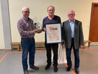 Walter Rüttiger informierte in seinem Tätigkeitsbericht aus den Jahren 2022 und 2023 über die Erfordernisse, die durch Ausfälle und Defekte im Betrieb der Empfangsanlage und des eigenen Infokanals nötig waren. Alle technischen Probleme konnten, wie immer, ohne Fremdfirmen beseitigt werden. Zusätzlich konnte mit Hilfe der Fa Väth ein weiterer Bereich der Rhönstraße unterirdisch verkabelt und die Anlage technisch aufgerüstet werden. Der 1. Vorsitzende der Fernsehinteressengemeinschaft stellte eine Mitgliederstatistik von 2010 - 2024 vor, aus der erkennbar noch sehr viele Häuser in Oberbach die Kabelanlage nutzen. Der größte Mitgliederschwund entstand in letzter Zeit dadurch, dass viele Mitglieder verstorben sind. Trotzdem konnten auch neue Mitglieder gewonnen und angeschlossen werden. Insgesamt ist seit 2010 ein Rückgang von 290 auf 260 Mitglieder, also etwas über 10%, zu verzeichnen. Um zu erreichen, dass die Fernsehinteressengemeinschaft Oberbach ein eingetragener Verein wird, mussten Neuwahlen durchgeführt und die Satzung angepasst werden. Alle Mitglieder der Vorstandschaft, Walter Rüttiger, Harald Dziadek, Thomas Väth, Kuno Bühner, Richard Rüttiger sowie Oswald Müller und Manfred Lieb stellten sich zur Wiederwahl und wurden auch einstimmig bestätigt. Als Kassenprüfer wurden Wolfgang Breitenbach und Dieter Feller gewählt. Nachdem Walter Rüttiger die Gründe für die Eintragung des Vereins vorgestellt hatte, wurde dieser Weg einstimmig von der Versammlung beschlossen. Am Ende konnte Walter Rüttiger seinen Weggefährten und 2. Vorstand der FernsehIG Harald Dziadek für 25 Jahre in der Vorstandschaft mit einer Urkunde und einem kleinen Präsent danken. Mit außerordentlichem Engagement hat er sich für die Belange der Oberbacher Fernsehkabelanlage, dem Aufbau und Betrieb der Empfangsanlage sowie der Betreuung der Mitglieder in hervorragender Weise verdient gemacht. Besonders bedankte sich Walter Rüttiger bei Harald Dziadek, dass er im Jahr 2013 vier neue Vorstandsmitglieder für die Vorstandschaft der FernsehIG begeistern konnte wodurch eine Verjüngung der Vorstandschaft erreicht wurde.