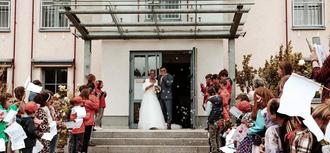 Am 20.05.2023 war es soweit unsere Michaela gab ihrem Roland im Standesamt in Wildflecken das „Jawort“. Als Überraschung sind Kinder, Eltern und das ganze Team nach Wildflecken gefahren um die beiden mit einem Lied zu überraschen. Ein herzliches Dankeschön auch im Namen von Michaela und Roland die sich sehr darüber gefreut haben. Wir als Team haben uns gefreut, das sich so viele Eltern Zeit genommen haben um den Tag für die beiden unvergesslich zu machen.