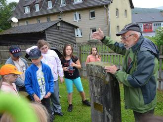 Geplant war bei einem Wandertag gemeinsam mit Walter Vorndran, dem Obmann der Wildfleckener Feldgeschworenen einen kleinen Teil der Grenzen des Marktes Wildflecken zu erkunden. Leider machte uns das Wetter einen Strich durch dieses Vorhaben. So trafen sich motivierte Schüler und ihre Lehrkräfte mit Herrn Vorndran in der Aula der Sinntalschule. Dort erfuhren die Kinder die historische Bedeutung der Grenzsteine. Um eine Vorstellung zu bekommen, ging Herr Vorndran mit den Kindern auf den Schulhof und betrachtet dort die Grenzsteine, aber auch die dort noch zusätzlich stehenden historischen Steine. Im Anschluss daran klarte das Wetter etwas auf und die Klassen konnten noch bis zum Kapellchen laufen. Unter der Führung des Obmannes erfuhren die Kinder Interessantes über die Gemarkungsgrenzen, die verschiedenen Grenzmarkierungen und die Aufgaben der Feldgeschworenen. Informationen gab es aber auch über Bildstöcke und weitere interessante Punkte am Wegesrand. Die Schüler bekamen in der kurzen Zeit viele neue Informationen, die sie gerne an Geschwister und Eltern weitergeben wollten. Herr Vorndran lobte beim Abschluss die Aufmerksamkeit und das Interesse der Kinder. Die Klassensprecher übergaben ihm noch ein kleines Dankeschön für die Zeit und das Wissen, das er mit ihnen geteilt hat.